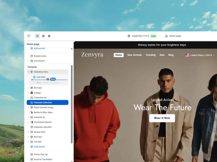 With Shoptimity's new theme mechanism, you can use reusable theme blocks to create and update sections easily, keeping your store organized and ready to scale as you grow.